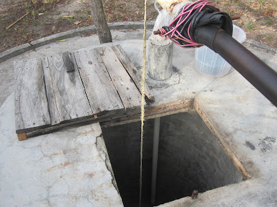 The next morning we were awakened by the roosters. It was time to start another day. But, I had to find water to get cleaned up. Where do I find water? I had to head to the well, let down the bucket about 60 feet and pull up a bucket full. Just like the good ol'e days.